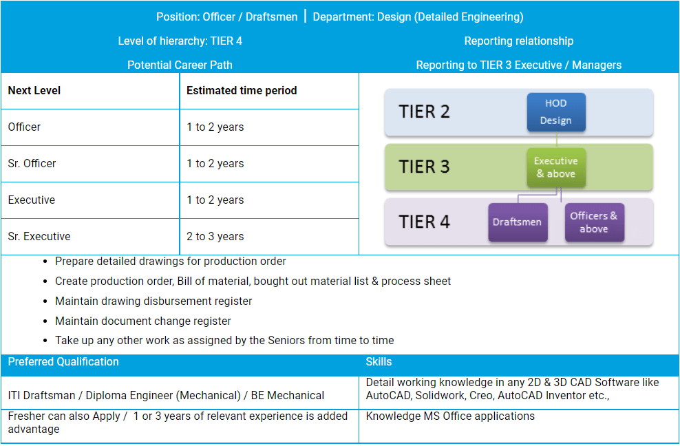 We have a vacancy for Design Draftsman in our Design department, detail requirement given as below: